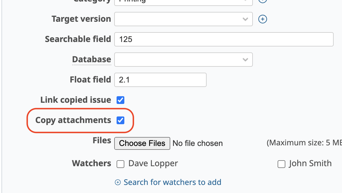 | Option | Copy Attachments | "Copy attachments" Checkbox on New Issue Screen |