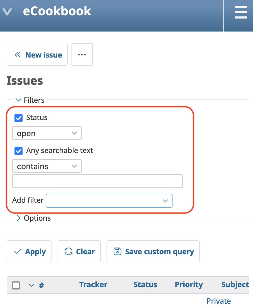 Issues filters