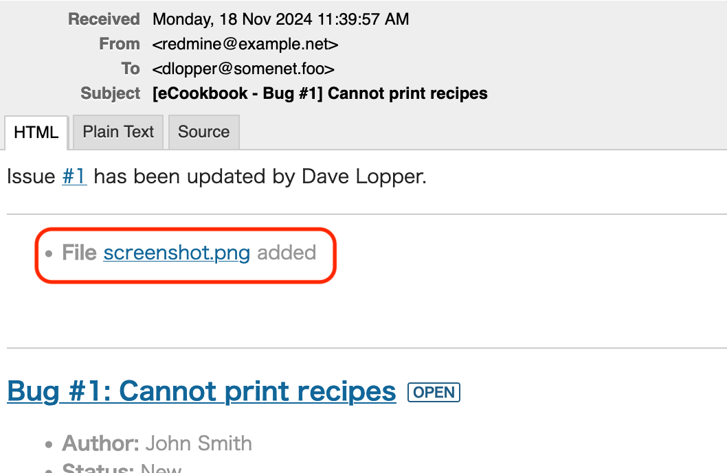 Example: Email notification when an issue is updated with only a file attachment."