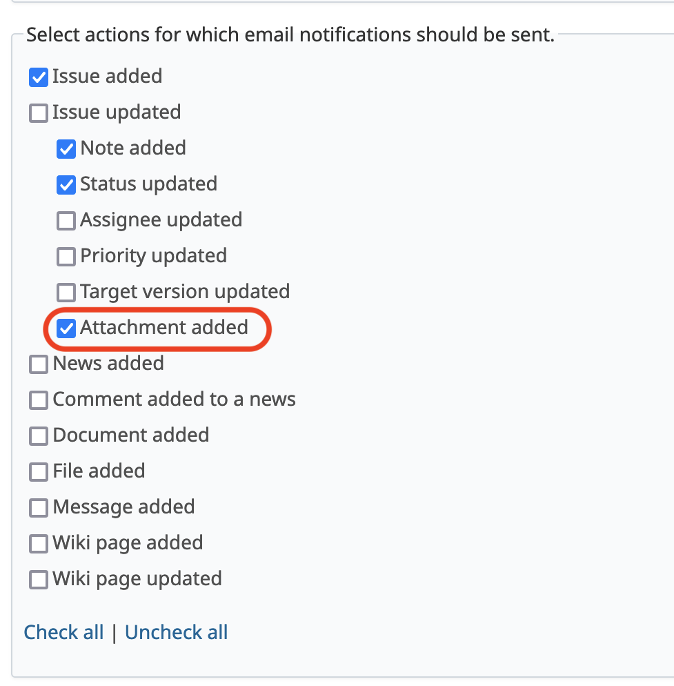 However, if 'Issue updated' was disabled and only 'Comment added' or 'Status updated' was enabled to reduce email notifications, no email was sent when an issue was updated with only a file attachment. As a result, file attachments without comments might go unnoticed.