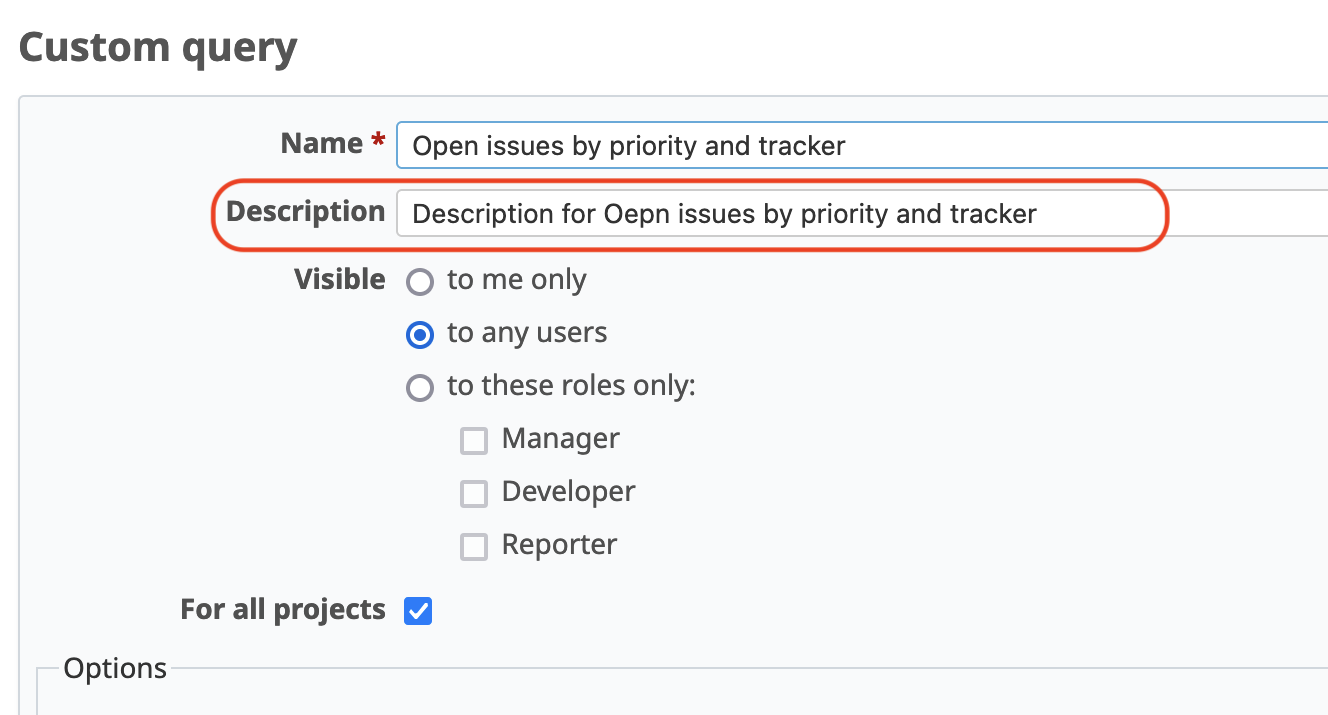 You can now add descriptions to custom queries. Writing down the conditions or purpose of the queries can help project members understand them better.