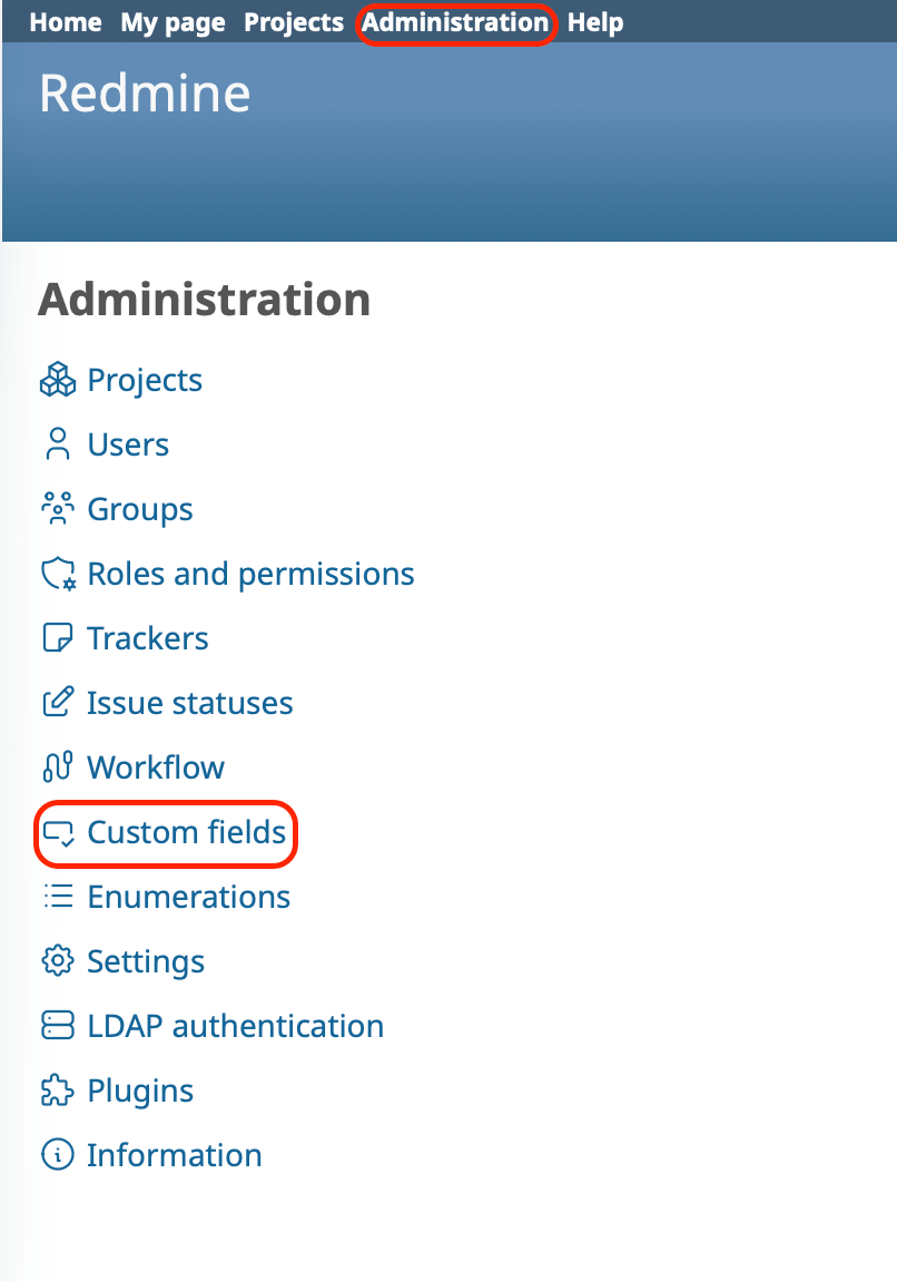 1. Open Administration → Custom fields.