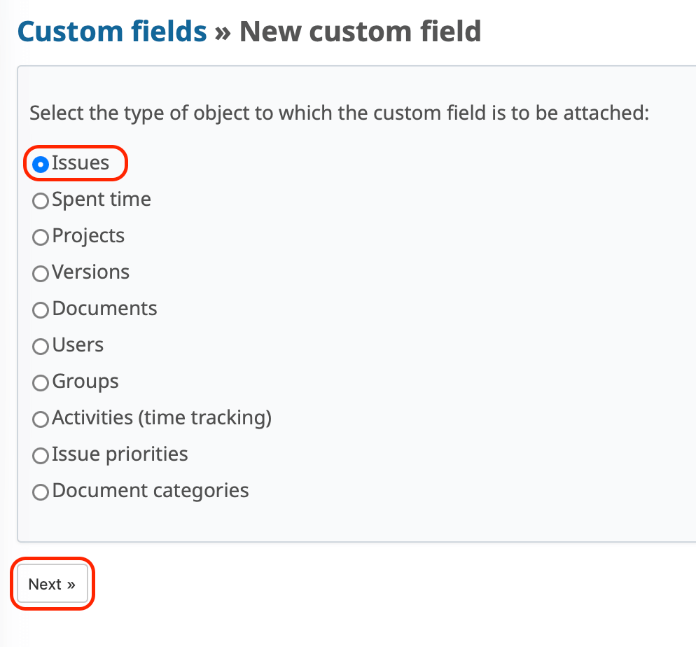 3. Make sure Issue is selected as the object type, then click Next ».
